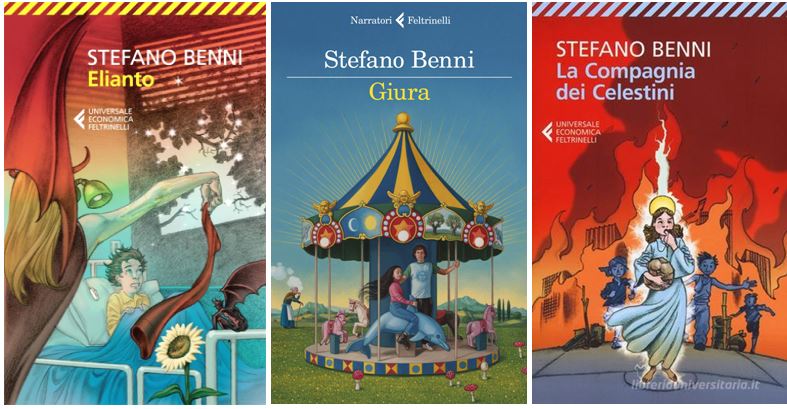 Perché leggere uno scrittore come Benni? Per la capacità del suo sguardo di scandagliare lucidamente la società, collocando i suoi difetti e le sue assurdità in una dimensione senza tempo. Il mondo attuale che non sta affrontando il riscaldamento climatico, che impoverisce il 99% dell’umanità (per arricchire l’1%) e pensa al riarmo e a possibili guerre mondiali è il mondo che Stefano Benni ha già descritto nei suoi romanzi. Dobbiamo essere disperati, allora? No, perché negli scritti di Benni non manca mai la speranza, in genere incarnata da spiriti, maghi o bambini, come contrapposizione a un potere adulto corrotto e stupido. “Io, più invecchio e più penso che ho vissuto un grande privilegio: quello di poter fare un lavoro che non è mai stato separato dalla mia vita“. Questo “privilegio” dovrebbe essere un diritto universale e Stefano Benni l’ha raccontato meglio di tutti. (nella foto le copertine di tre libri di Stefano Benni)